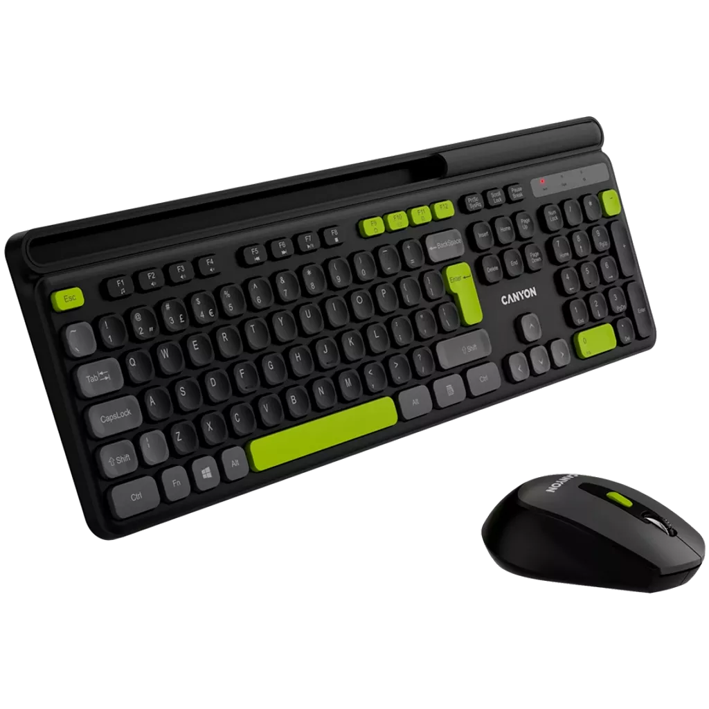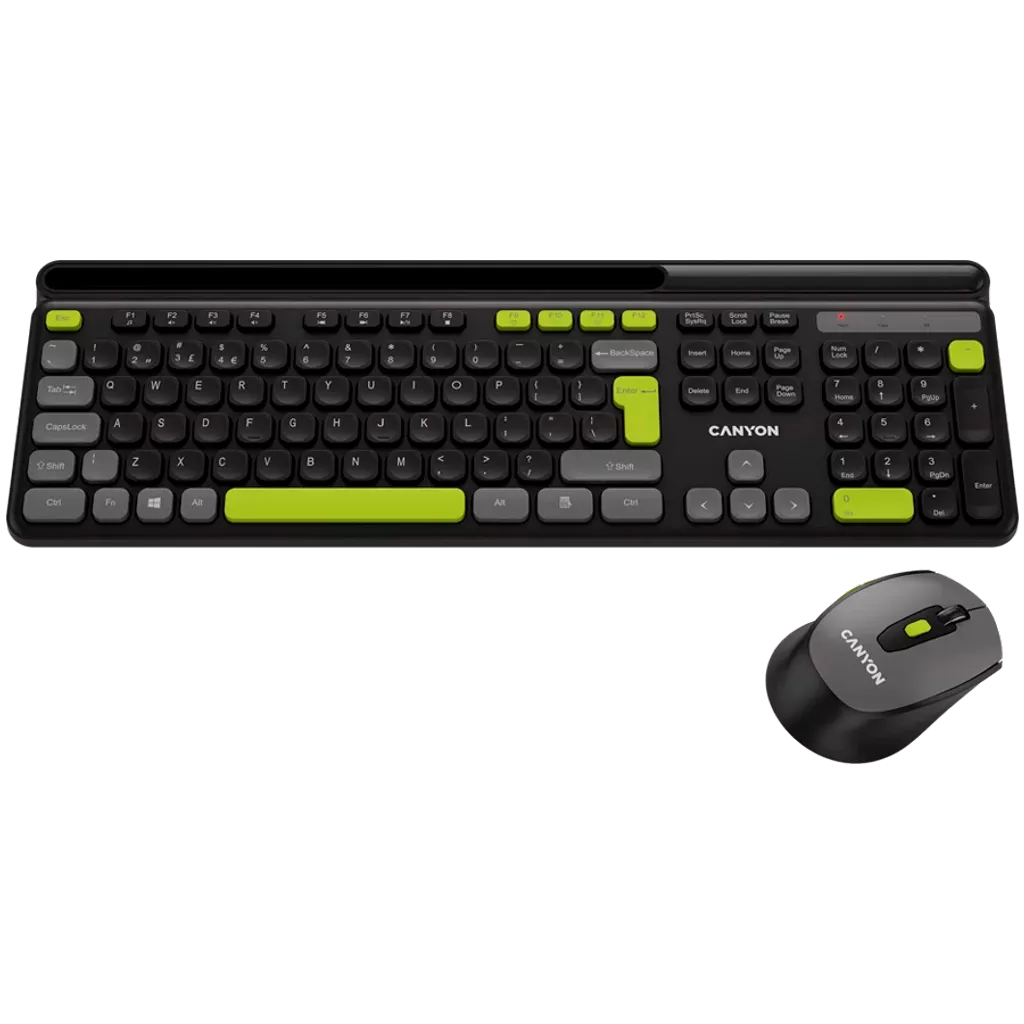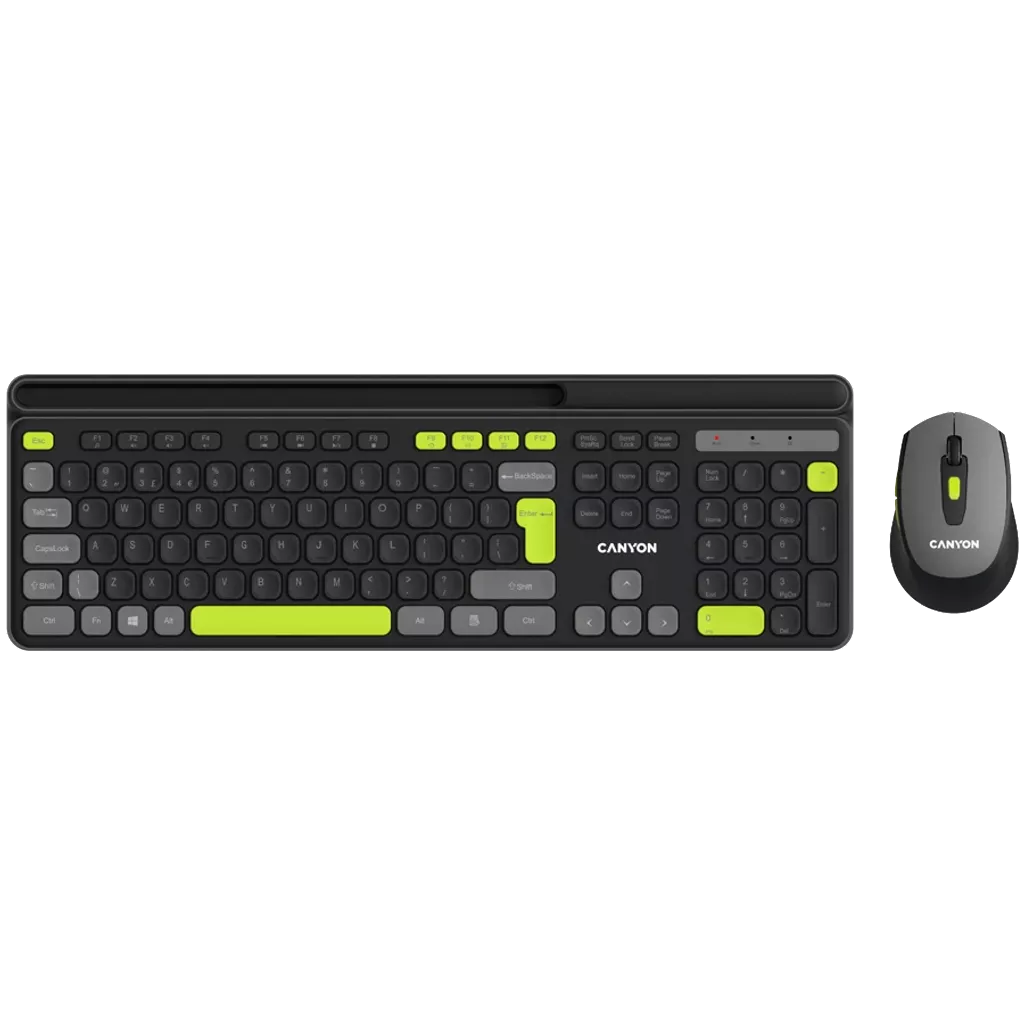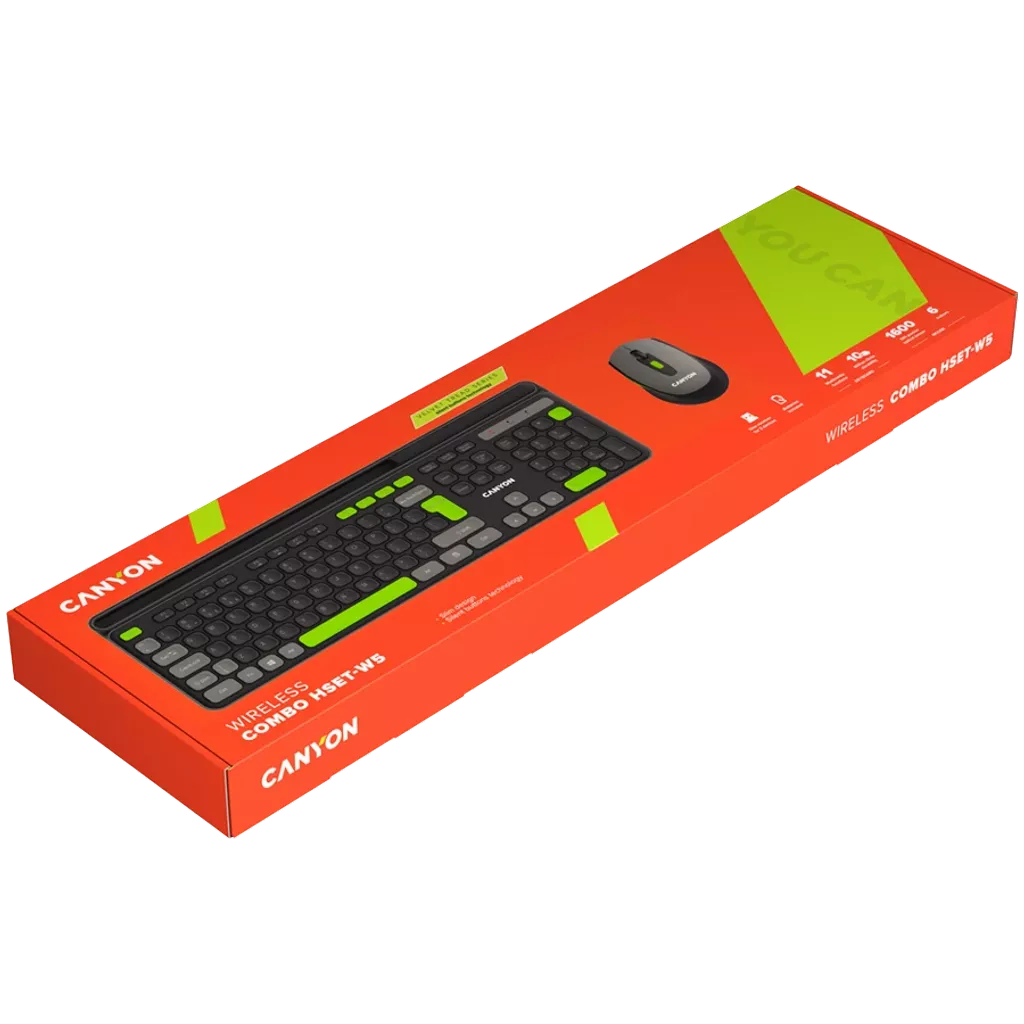 The Canyon Wireless Combo Set HSET-W5 offers a full-sized, 105 key keyboard with scissor frame switches, providing a comfortable and durable typing experience. With a slim ergonomic design and 13 multimedia keys, this set is perfect for both work and play. The mouse features 6 silent buttons and adjustable DPI for precise control, along with a soft-touch coating for added comfort. Designed for longevity, the keyboard and mouse have a lifecycle of 10 million keystrokes and 3 million clicks respectively. Enjoy wireless convenience and efficiency with the Canyon Wireless Combo Set.