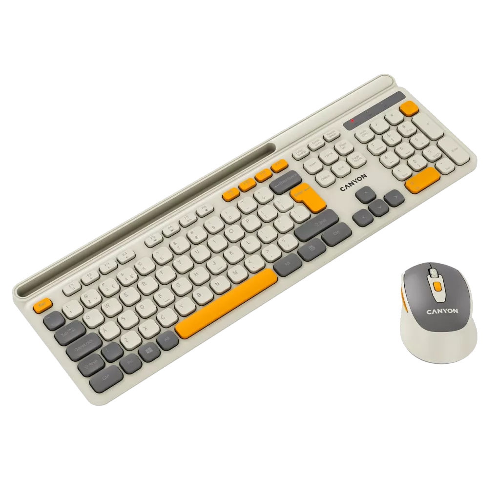 Weight 59g This Canyon Wireless Combo Set includes a full-sized keyboard with 13 multimedia keys, ergonomic design, scissor frame switches, and a matte finish laser engraving. The accompanying mouse features 6 silent buttons, adjustable DPI, soft-touch coating, and a lightweight 59g design. Both devices have long lifecycles and use AA/AAA batteries for easy replacement. Stay connected with this reliable and efficient set