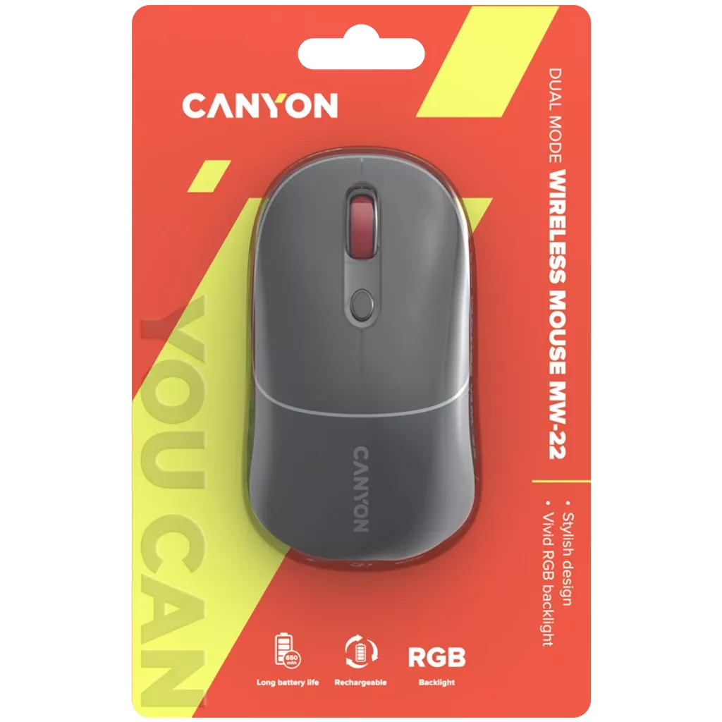 The Dual mode wireless mouse CNS-CMSW22DG offers both 2.4GHz and BT 5.0 connectivity for seamless use. Its adjustable DPI (800/1200/1600) and four buttons make it highly versatile and precise. With a rechargeable 650mAh battery and 15 RGB backlight modes, it offers convenience and customization. Its automatic sleep mode and Type C charging cable add to its overall user-friendly design.