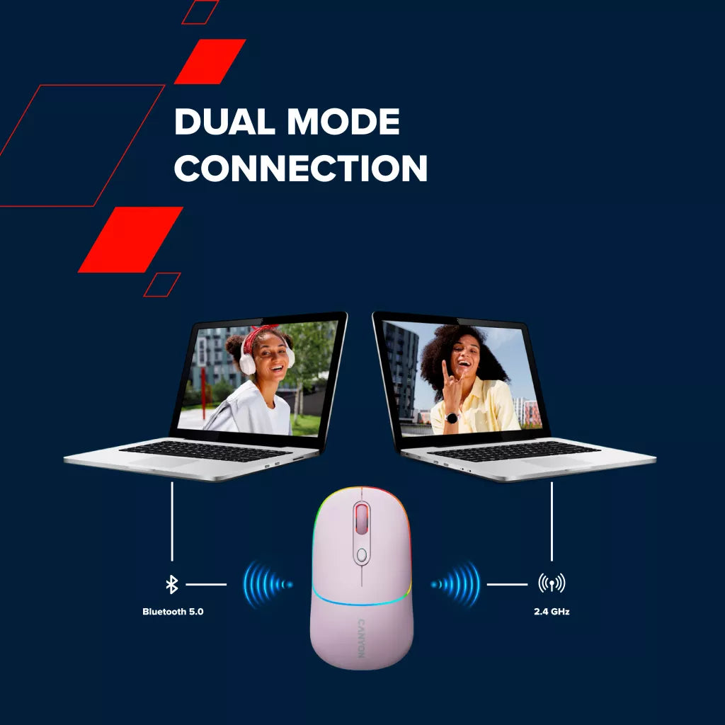 Experience the ultimate in wireless convenience with the CNS-CMSW22SW Dual Mode Wireless Mouse. Switch seamlessly between 2.4GHz or BT 5.0, while the optical sensor and adjustable DPI of 800/1200/1600 provide precision control. With a rechargeable 650mAh battery, RGB backlight, and automatic sleep mode, this mouse is designed for long-lasting performance. Comes with a Type C charging cable for added convenience
