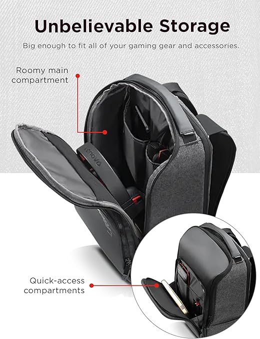 The Lenovo Legion Recon gaming backpack is designed for ultimate convenience and protection. With a spacious 15.6 inch compartment, this black, unisex backpack can easily accommodate your gaming laptop and other essentials. Expertly crafted with durable materials, it offers superior comfort and support for gamers on the go.