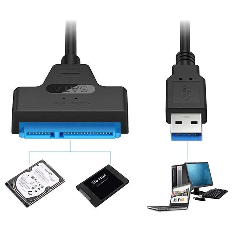 Adapter for connecting 2.5" SATA drives to a USB Type-A port.